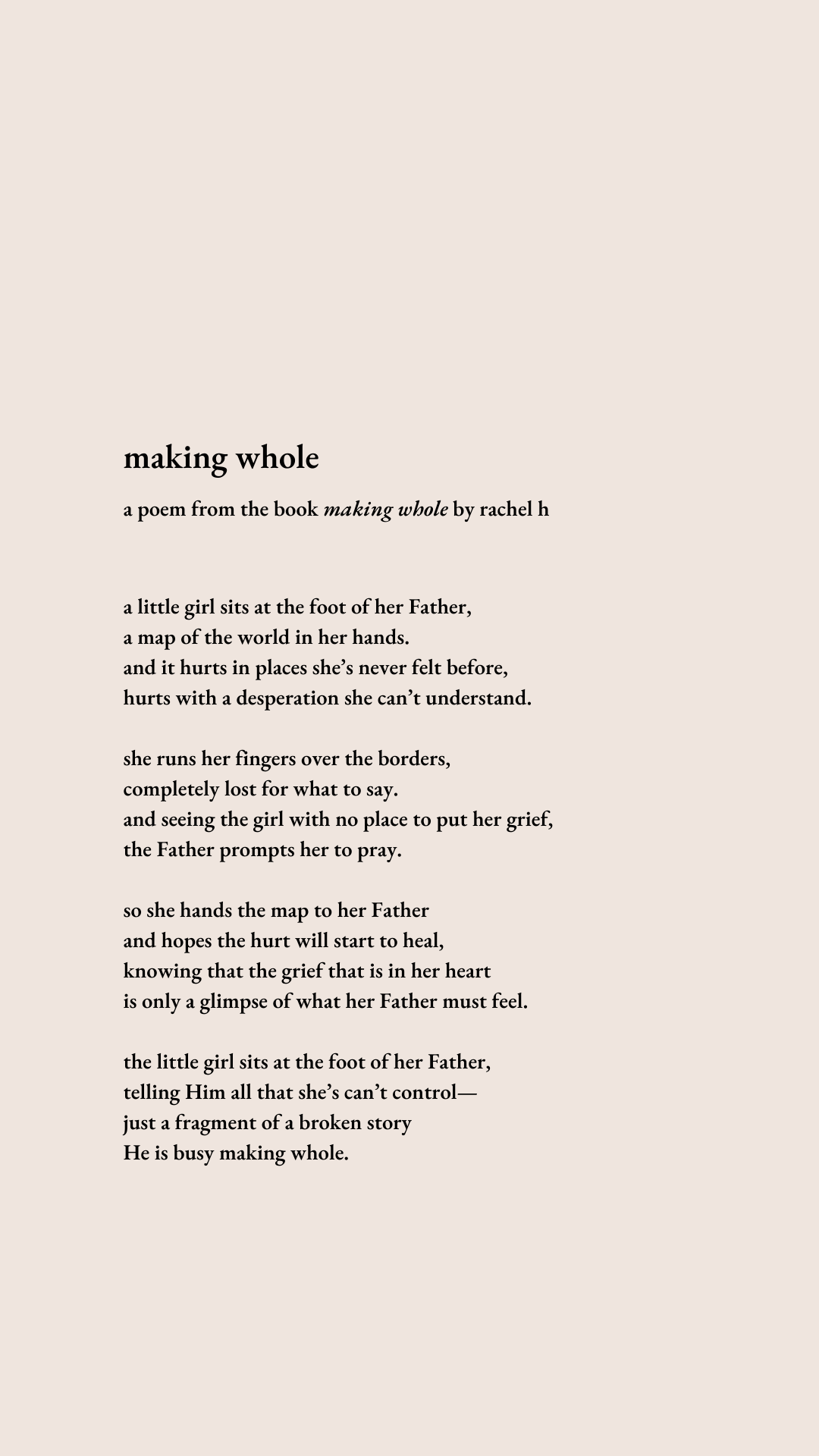 Making Whole is about slowing down and asking hard questions about the purpose God has for you and the plan He has for His world.