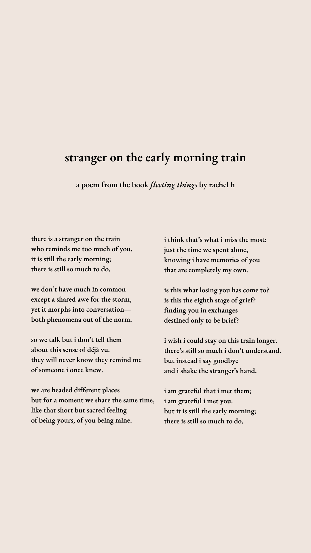 Fleeting Things is a reflection on the journey to trust, love, and belong, and what happens when we try to find home in fleeting things.